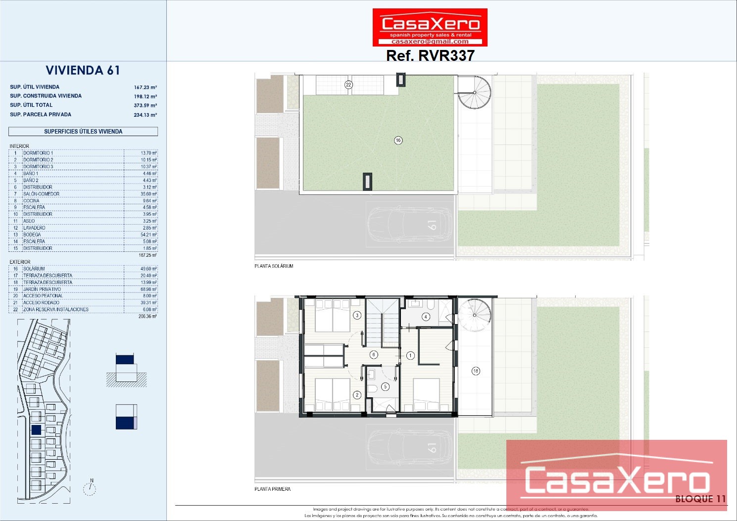 In de fotoreportage vindt u de plattegronden van de woning en op de bovenste verdieping bevindt zich een solarium waar u kunt genieten van het panoramische uitzicht.