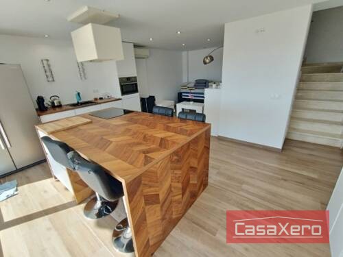 In total it has 2 kitchens, 3 bedrooms, 2 bathrooms, 1 guest toilet, 2 balconies and a covered terrace, all at full width of the house and outside a low maintenance garden / terrace.